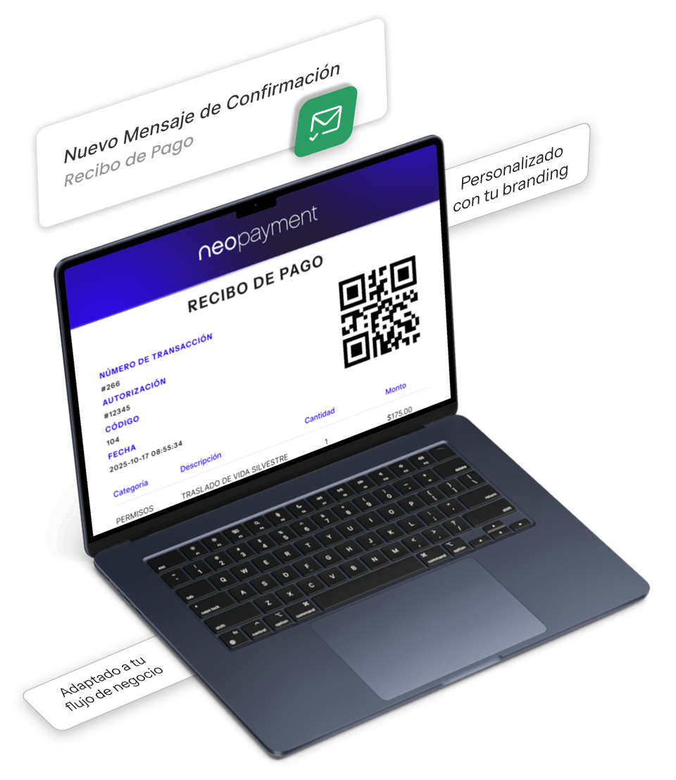 - Notifica automáticamente a tus clientes con recibos y correos personalizados.